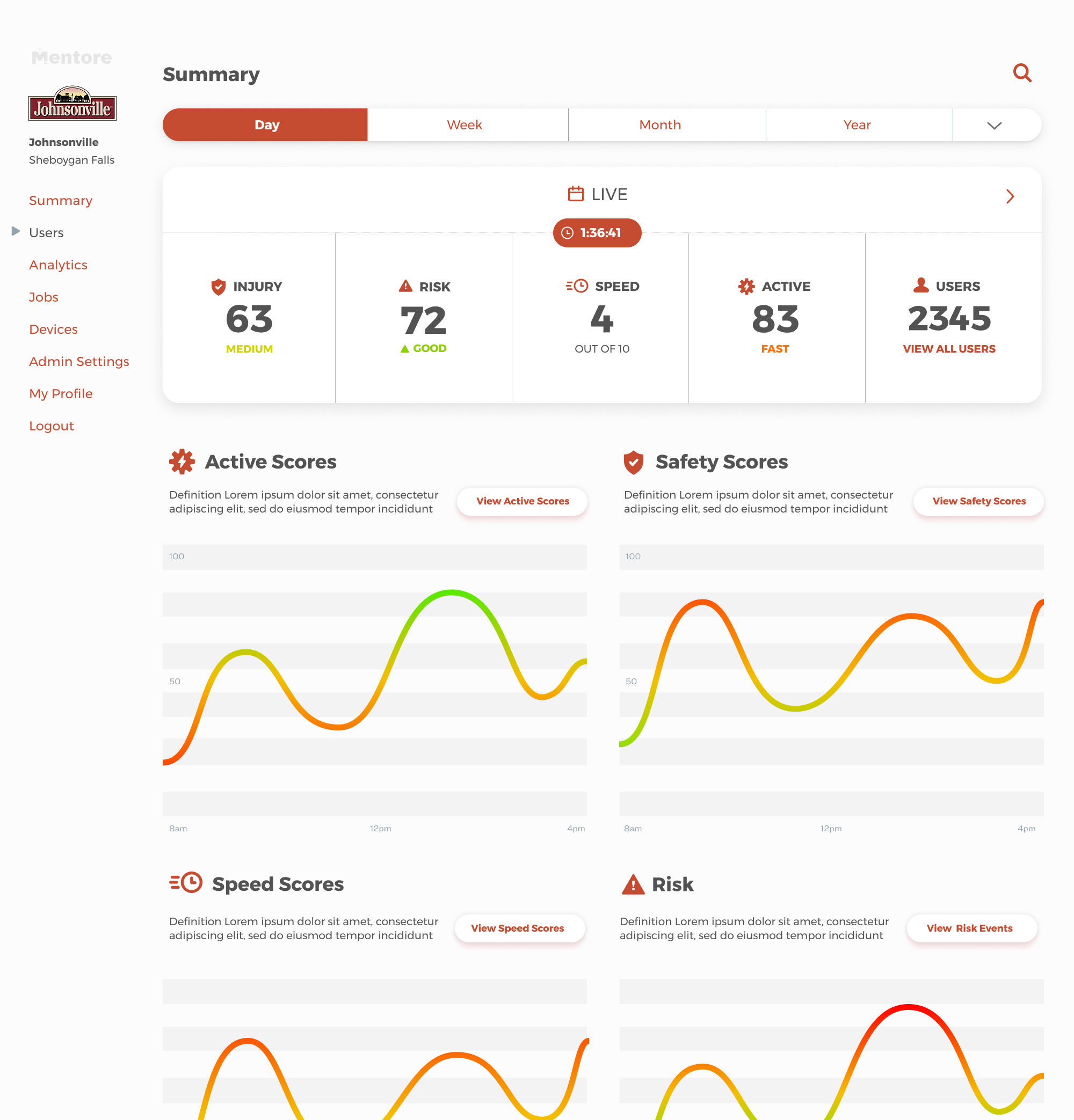 The user admin would be used by managers and executives to track and analyze data both detailed and aggregate. Assigning devices to workers,