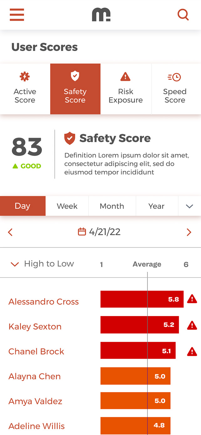 Used by frontline workers in factory environments like Rivian and Johnsonville, the wearable app monitored ergo safety standards, provided productivity feedback and acted as a communication vessel between co-workers and management. In some frontline environments the wearable would stay at the workplace and be shared by employees. The companion mobile app would be offered to accomodate access to the app and allow workers to view data in a friendier screen format and make the data accessible even after users returned their wearables.