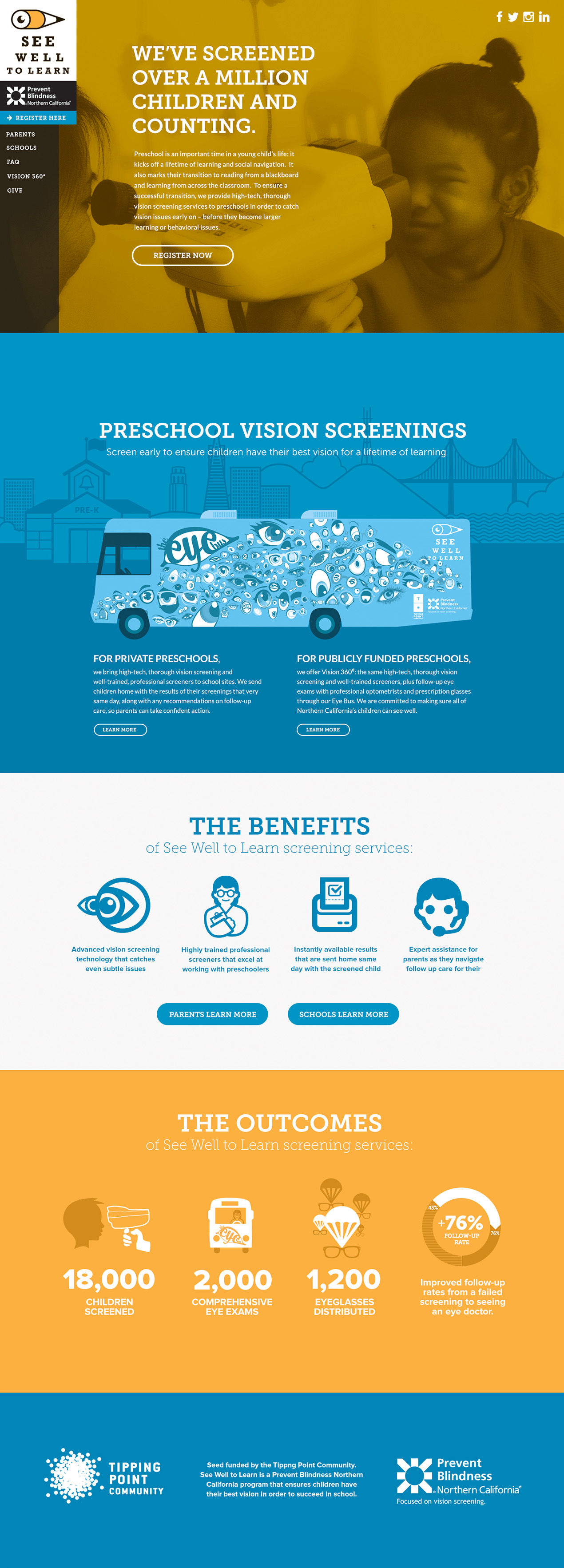 See Well to Learn was a collaboration by Prevent Blindness Northern California and Tipping Point that offered preschool aged children services related to vision impairedness.